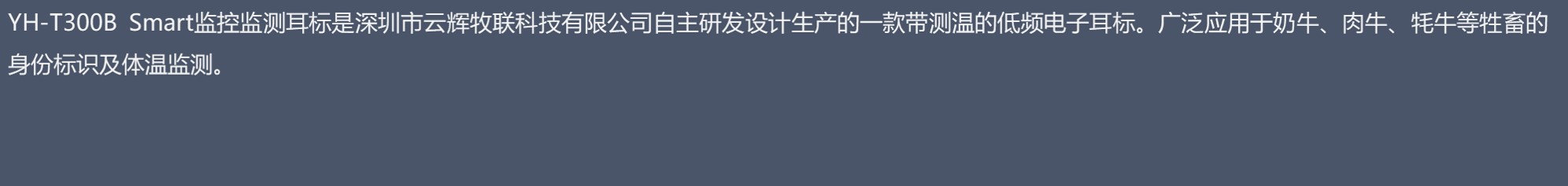 應(yīng)用與奶牛、肉牛、牦牛等牲畜的身份標識及體溫狀態(tài)監(jiān)測。