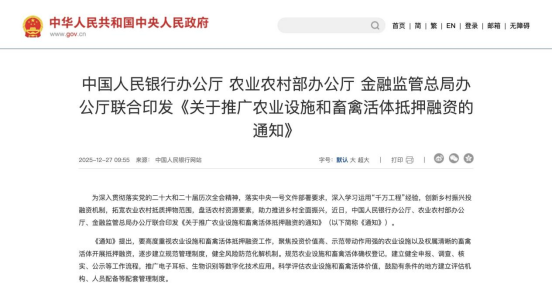 2025年12月,中國(guó)人民銀行、農(nóng)業(yè)農(nóng)村部、金融監(jiān)管總局聯(lián)合印發(fā)《關(guān)于推廣農(nóng)業(yè)設(shè)施和畜禽活體抵押融資的通知》,明確將牛、羊、豬等納入合格抵押物范圍,標(biāo)志畜禽活體獲金融市場(chǎng)認(rèn)可,成為可撬動(dòng)資金的有效資產(chǎn),為破解畜牧業(yè)融資難題奠定政策基礎(chǔ)。
